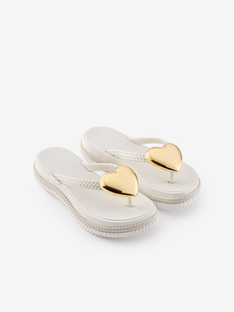 Chanclas ligeras de suela gruesa con estampado de corazones y olas CoolChap Beige cálido